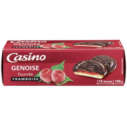 12 biscuits avec un fourrage (55%) à la framboise, aromatisé framboise et un nappage de chocolat noir. Ingrédients : _fourrage_ 55%: sirop de glucose-fructose -...