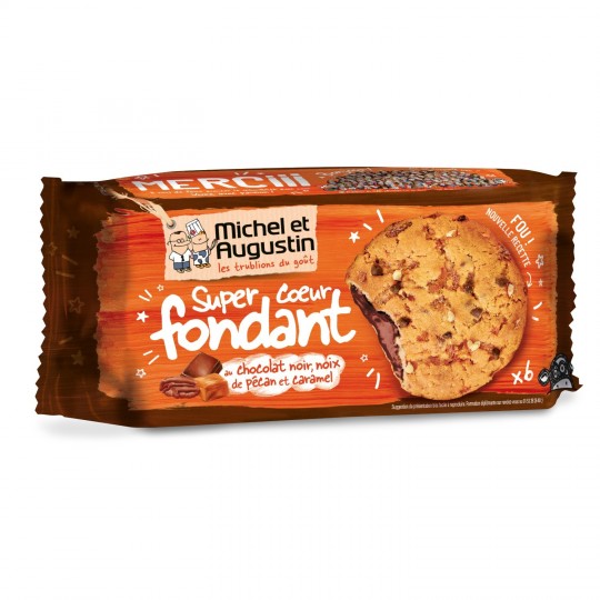 Super cookies coeur fondant au chocolat noir, noix de pécan et caramel