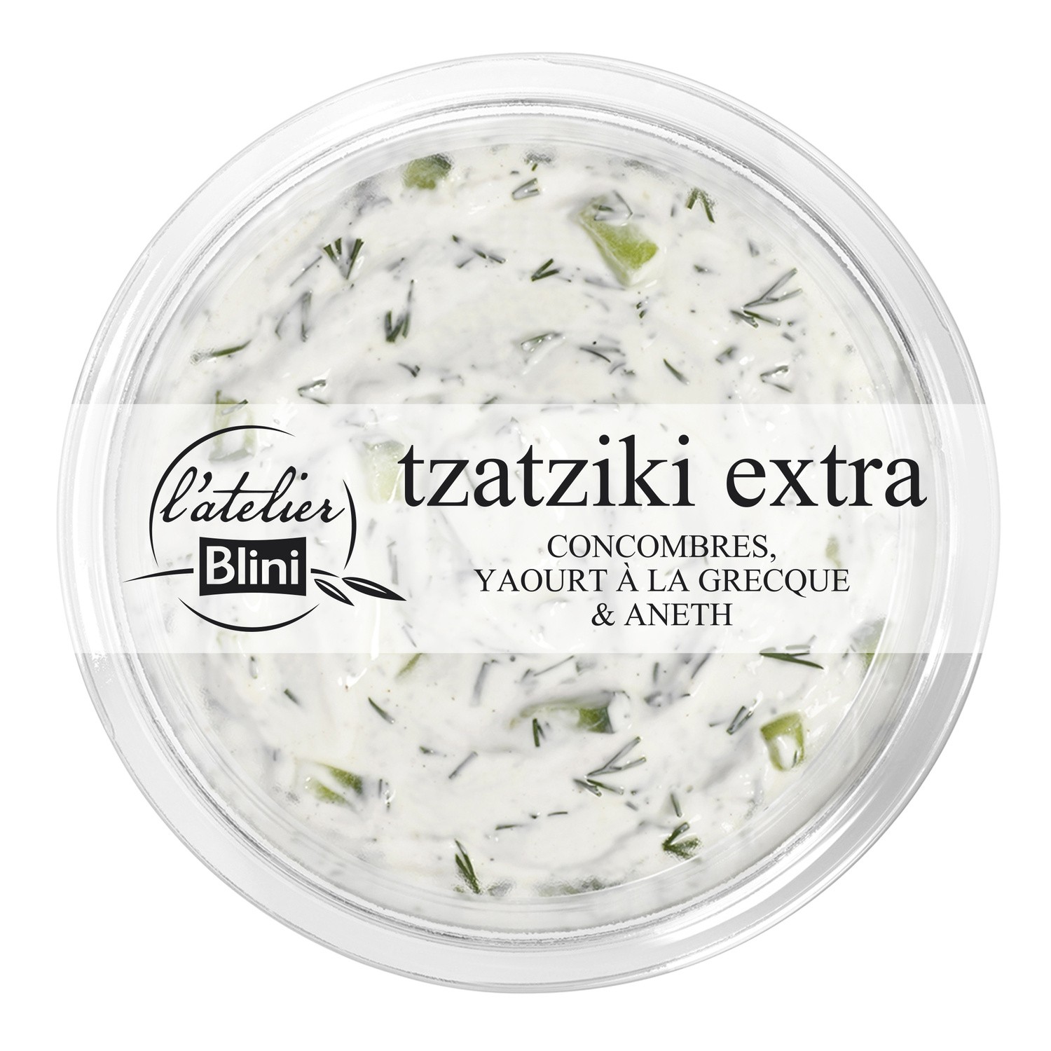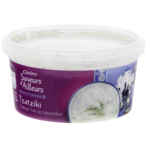 Tzatziki Extra.Ingrédients : Yaourt grec 61% (lait de vache, crème, protéines de lait, ferments lactiques) - concombres 30% - huile d'olive vierge extra - ail...