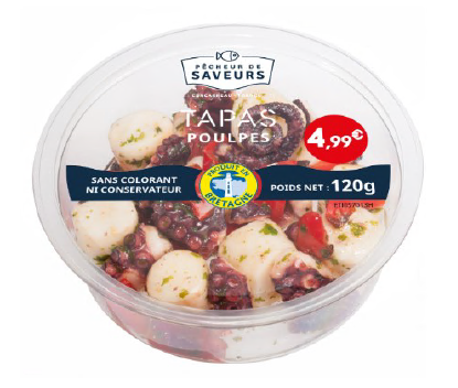 Rillettes de thon.Ingrédients : _thon_ listao 39% - _colin_ d'alaska 17% - eau - huile de colza - huile de tournesol - protéine de _lait_...