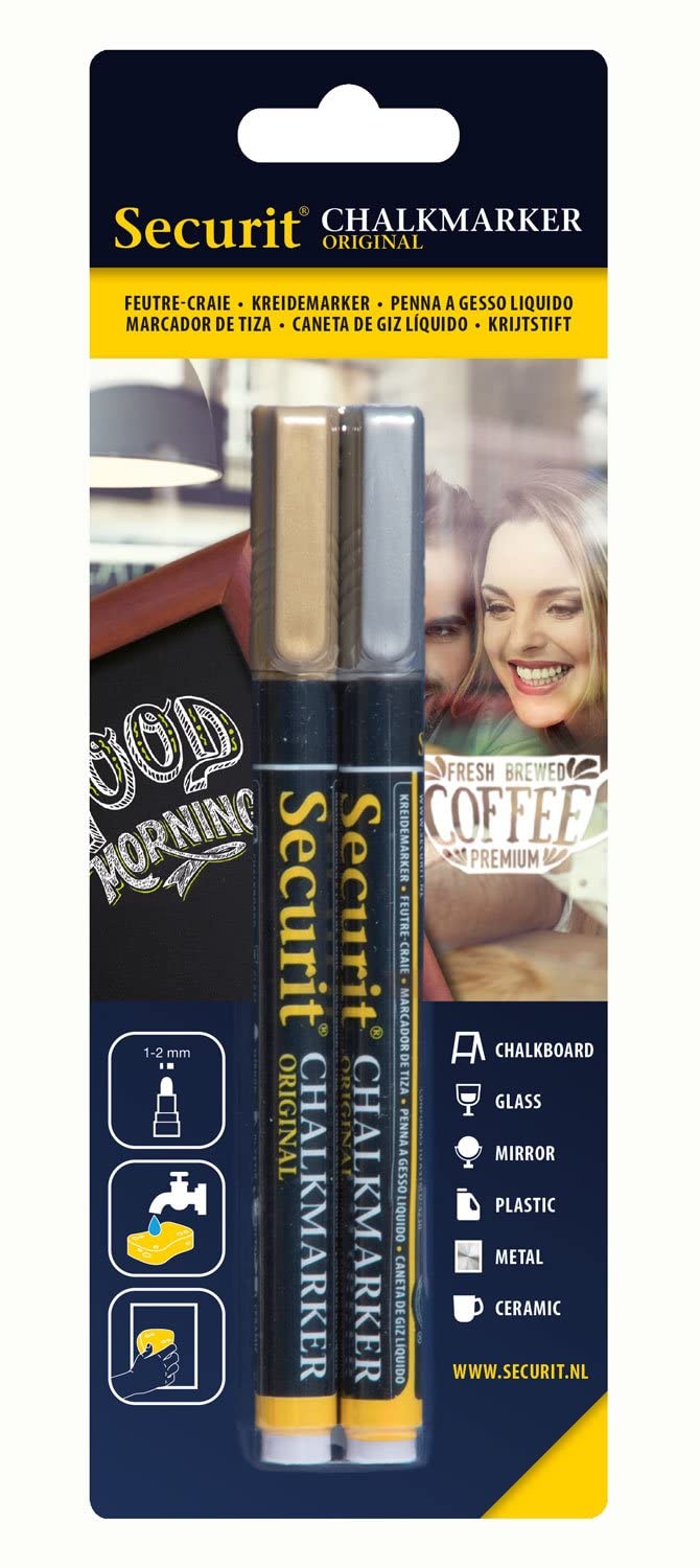SECURIT Lot de 2 Feutres-Craie à Encre Liquide - Taille de Mine 1-2mm