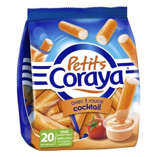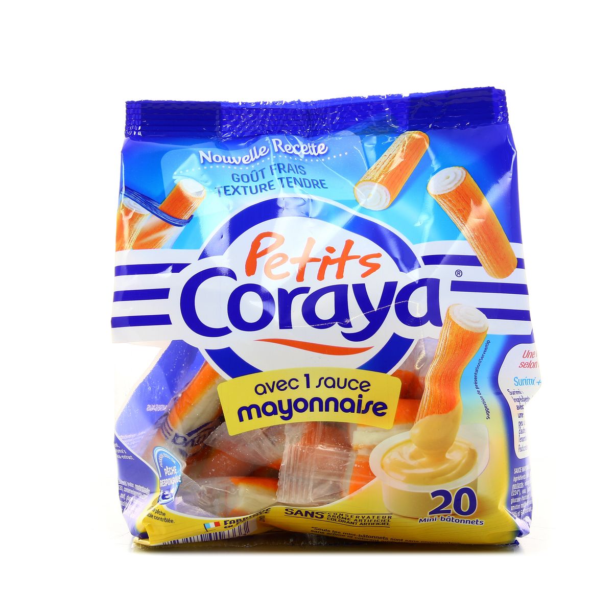 Petits coraya sauce mayonnaise.Ingrédients : Mayonnaise: Huile de colza, moutarde de Dijon (eau, graines de moutarde, vinaigre d'alcool, sel, acidifiant : E330, conservateur E224*), eau,...