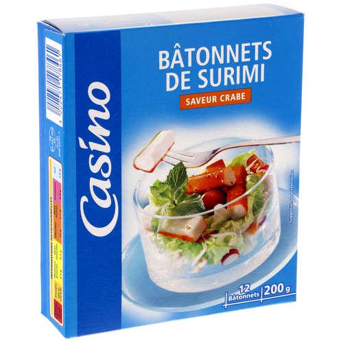Surimi de chair de poisson.Ingrédients : Chair de _poisson_ 38% - eau - amidons de _blé_ et de pomme de terre - _lait_ écrémé réhydraté...