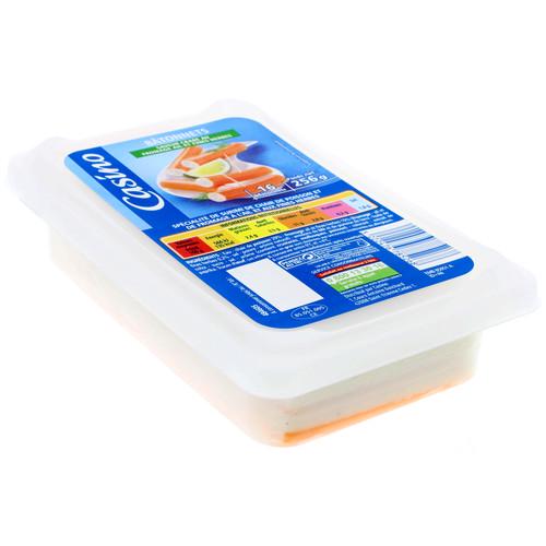 Préparation à base de chair de poisson et fromage ail et fines herbes.Ingrédients : Eau, chair de _poisson_* 29%, _fromage_ ail et fines herbes 15%...