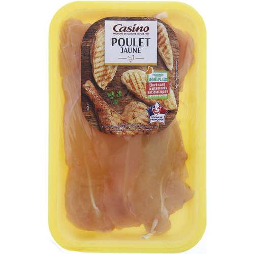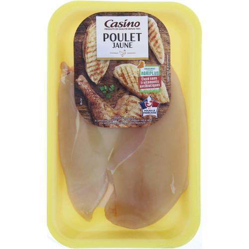 IngrédientsFilets de poulet avec peau : 86%, eau, sel, huile tournesol, sucre roux, sirop de glucose de BLÉ, protéines de pois, épaississant : carraghénanes.