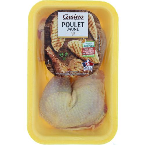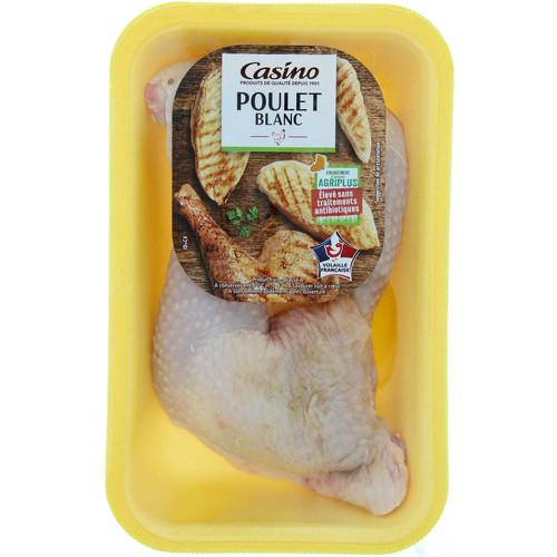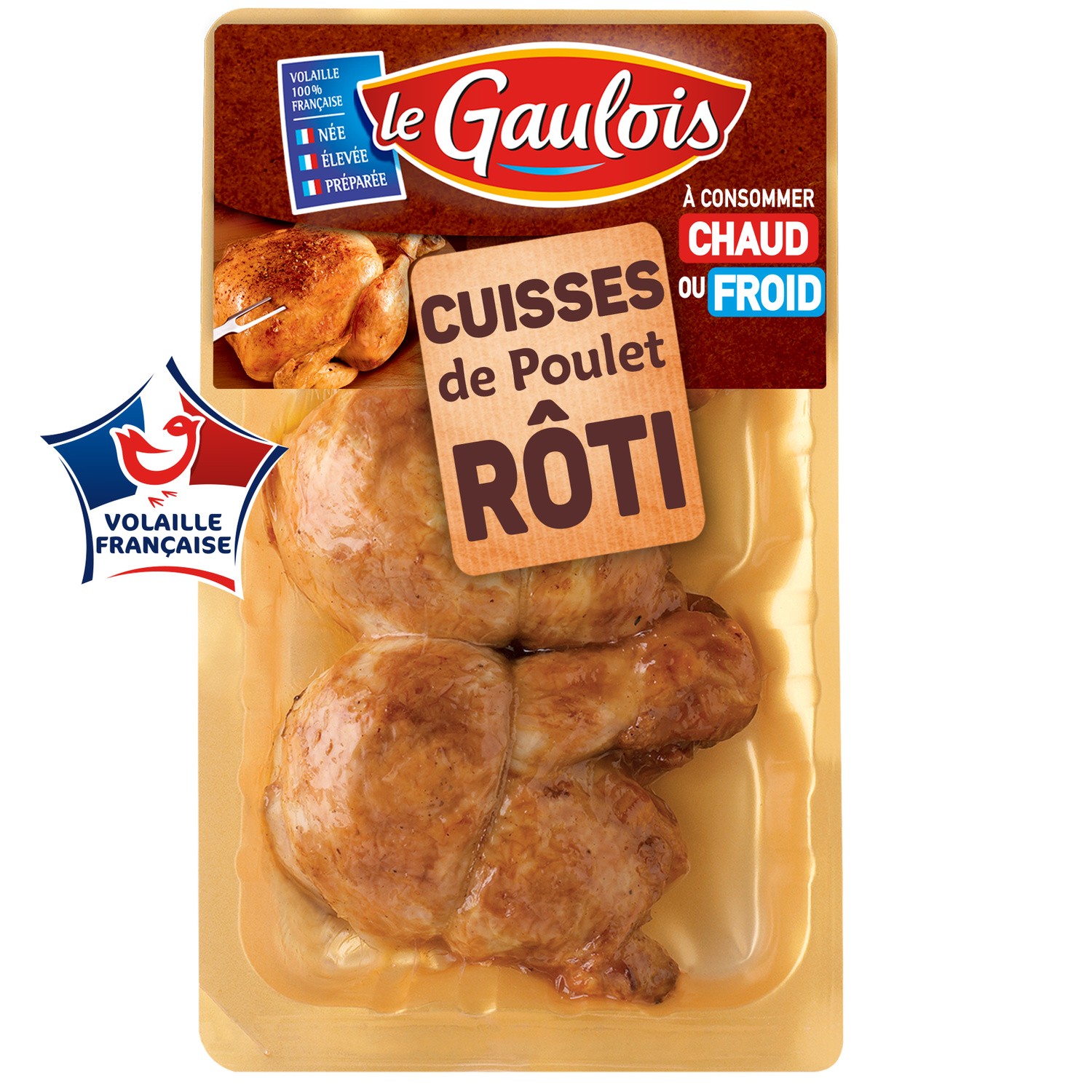 IngrédientsCuisses de poulet : 87%, eau, sel, sucre roux, sirop de glucose de blé, protéines de pois, fibres de carotte, épaississant: carraghénanes.