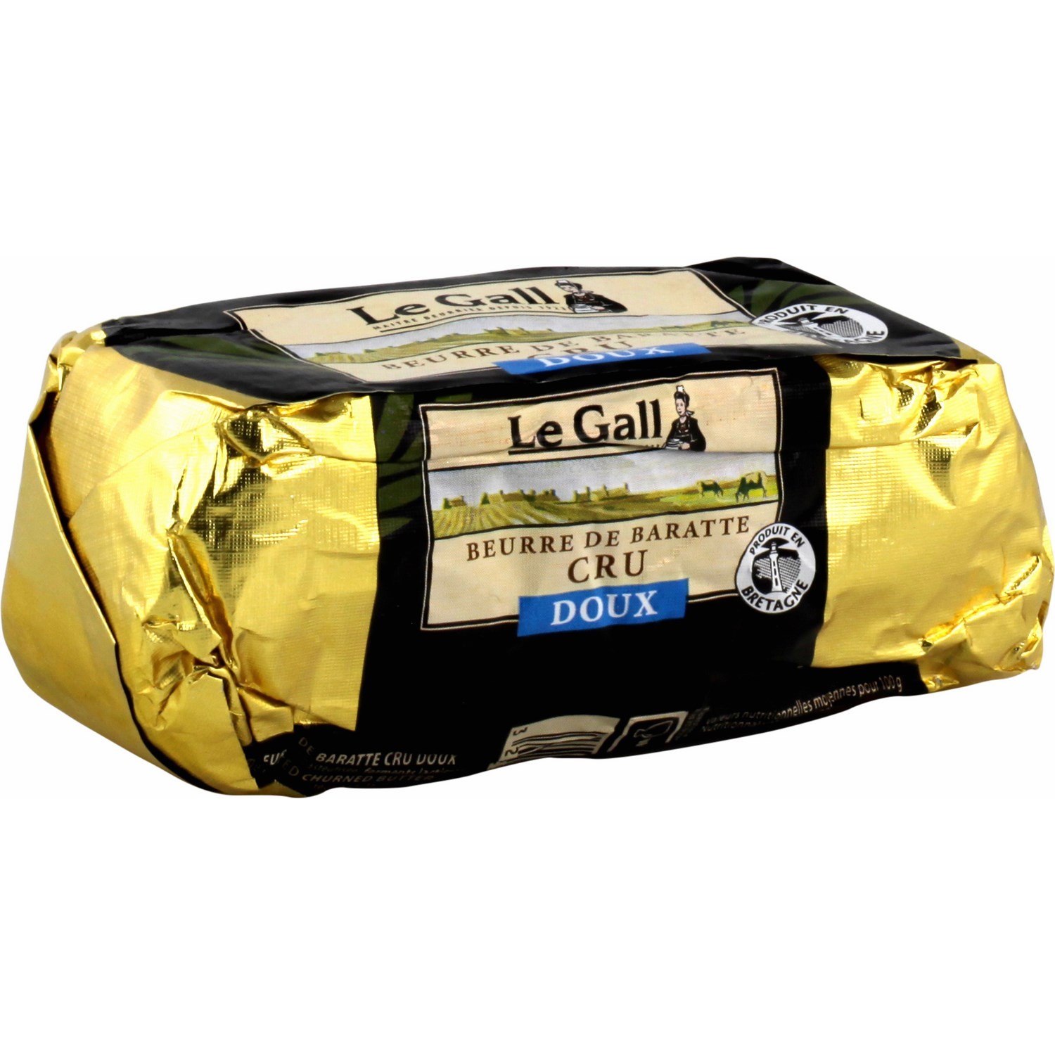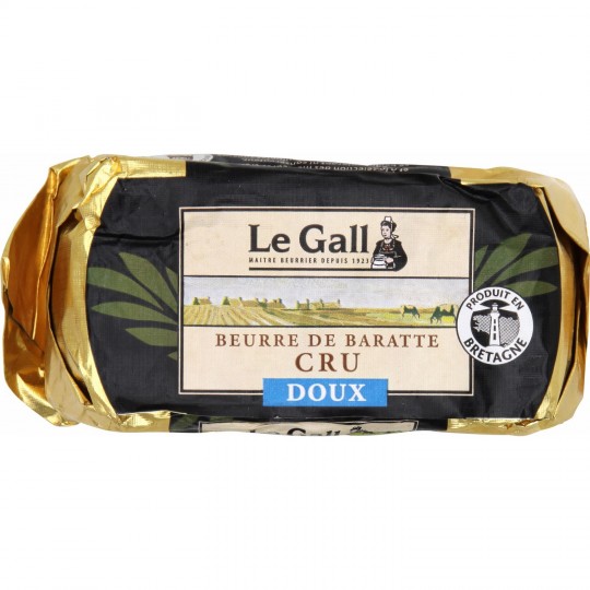 Beurre grand cru doux.Ingrédients : Crème de lait non pasteurisée (lait: origine France), ferments lactiques.Quantité : 125 gMarque : Le GallOrigine : France