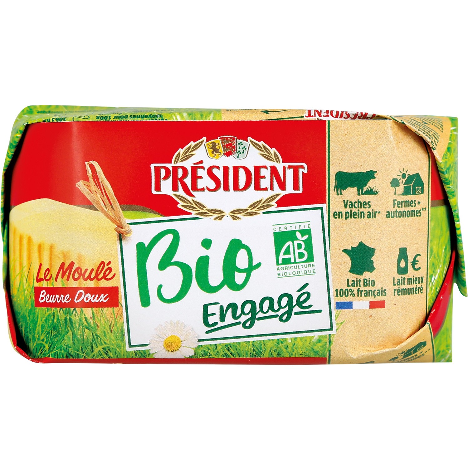 Président la laiterie bio.Ingrédients : Beurre biologiqueSel 3% maximumQuantité : 250 gMarque : Président