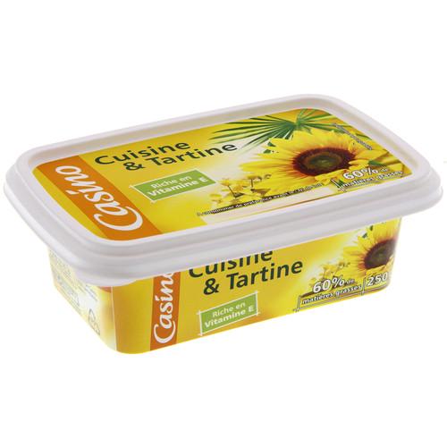Matière grasse à tartiner et à cuire à 63 % mat. gr..Ingrédients : Huiles et graisses végétales non hydrogénées 62% (colza, palmiste, palme), eau, émulsifiants...