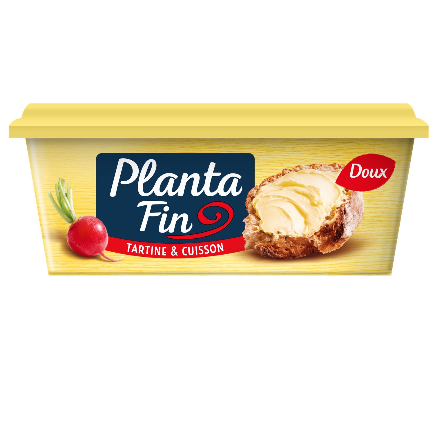 Planta fin.Ingrédients : Ingrédients huiles végétales 60% (palme, colza, tournesol, en proportion variable), eau, poudre de babeurre (LAIT), émulsifiants mono-, diglycérides d'acides gras et lécithine...