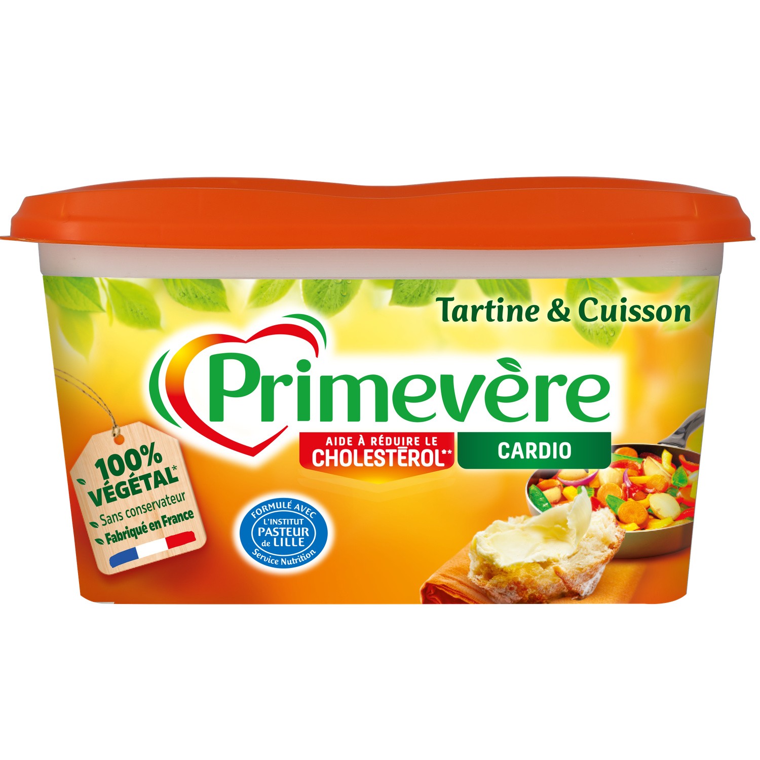 Primevère Tartine & Cuisson.Ingrédients : Huiles et graisses végétales non hydrogénées 62% (colza", palmiste*, palme*)(), eau, émulsifiants :lécithines de tournesol* sel, arômes naturels, jus de...