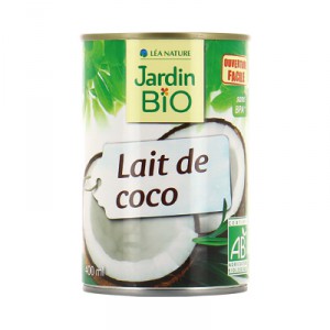 Lait de coco Bio.Ingrédients : Noix de coco 68%, eau, épaississant : gomme guarQuantité : 400 mlMarque : Jardin Bio,LEA NatureOrigine : Sri Lanka