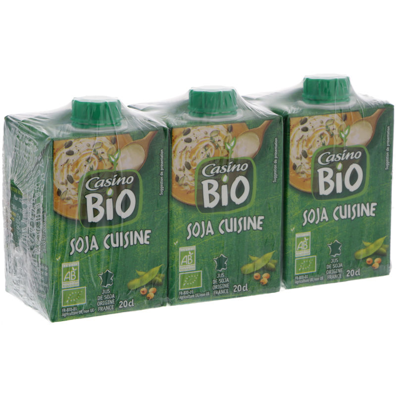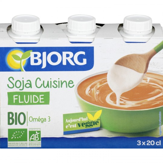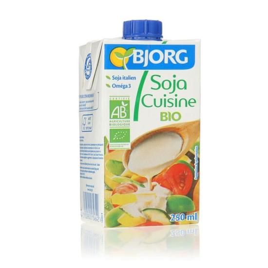 Préparation culinaire à base de soja issue de l'agriculture biologique, stérilisée UHT.Ingrédients : Jus de _soja_* 82%, ( eau, graines de _soja_* 7.6 %) -...