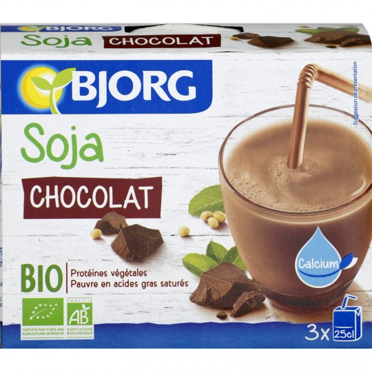 Boisson végétale à base de soja enrichie en calcium chocolat issue de l'agriculture biologique stérilisée UHT.Ingrédients : Jus de _soja_*** 89 % (eau, graines de...