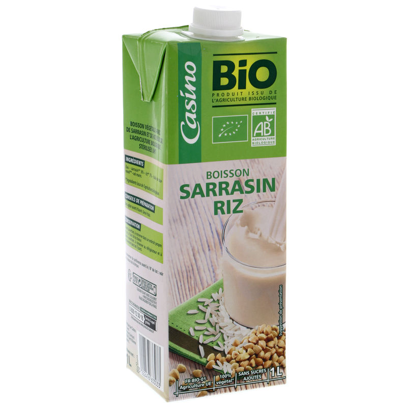 Boisson végétale à base de sarrasin et de riz, issue de l'agriculture biologique, stérilisée UHT.Ingrédients : Eau - sarrasin** 8% - riz** 7% - huile...