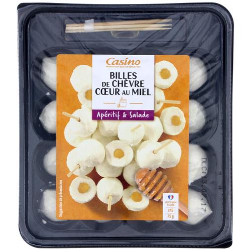 Billes de fromage de chèvre au lait pasteurisé avec un fourrage (18%) à base de miel, décongelées.. Ingrédients : Fromage de chèvre au_lait_pasteurisé 81% (origine...