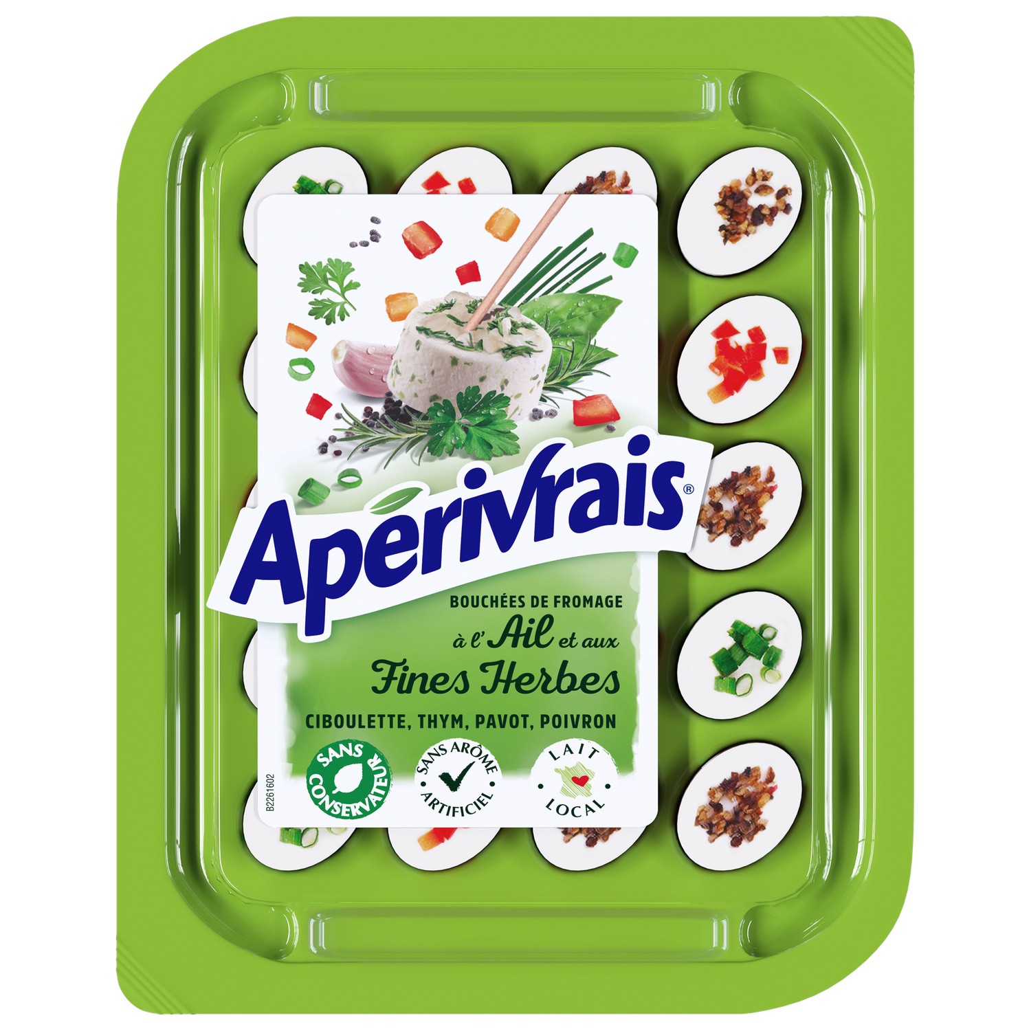 Bouchées de fromages à l'ail et fines herbes.. Ingrédients : _Lait_ et _crème de lait_ (origine : France), mélange aromatique d'ail et fines herbes :...
