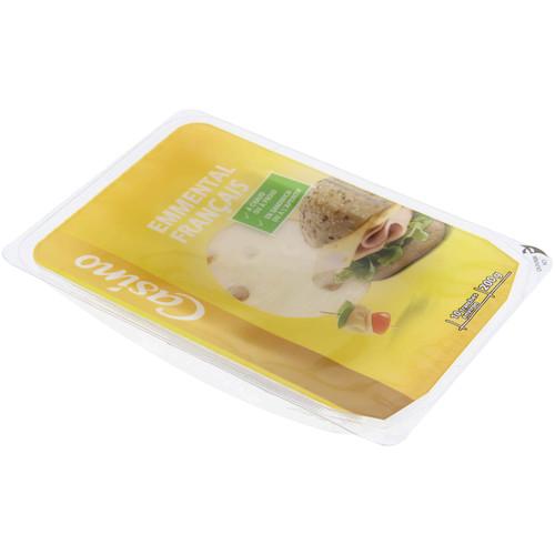Emmental français en tranches - Fromage à pâte pressée cuite. Ingrédients : _Lait_ de vache pasteurisé (origine: France) - sel - ferments lactiques (contient _lait_)...