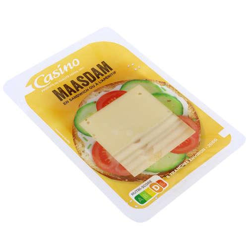 Maasdam en tranches - Fromage au lait pasteurisé à pâte pressée non cuite. Ingrédients : _Lait_ de vache pasteurisé (Origine : Pays-Bas) - sel -...