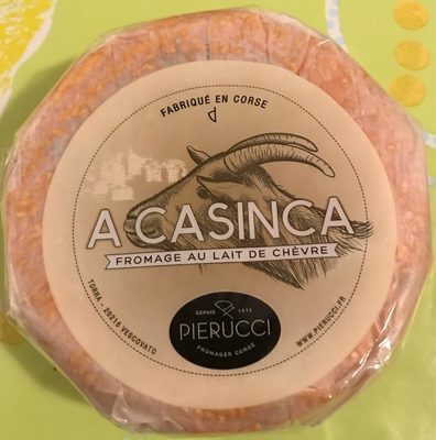 Fromage De Chevre Pierucci. Ingrédients : Lait de chèvre entier pasteurisé origine France, set, présure, ferments, colorant rocou E160b Marque : Pierucci