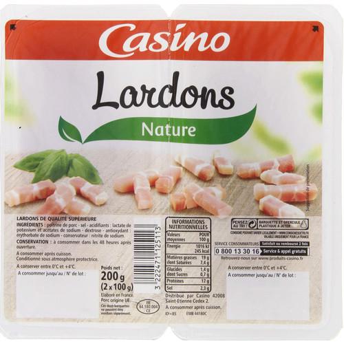 Lardons. Ingrédients : Poitrine de porc, nitrite de sodium, lactate de potassium, acétate de sodium, sel, dextrose de maïs, isoascorbate de sodium Quantité : 200...