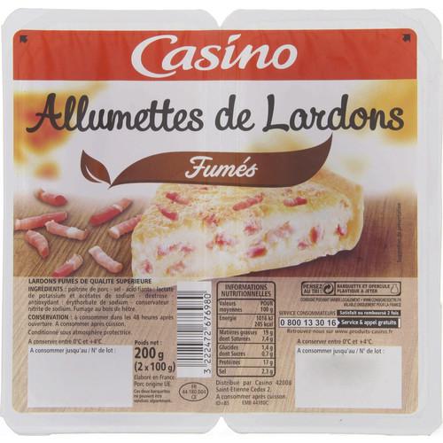Allumettes fumees. Ingrédients : Poitrine de porc, Viande de porc, gonservateurs : nitrite de sodium, lactate de potassium, acétate de sodium ; Sel, Dextrose de...