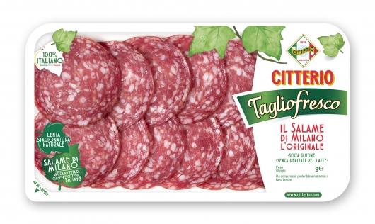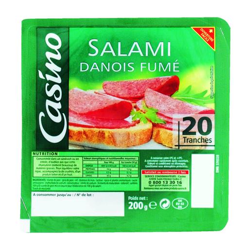 Salami de Milan. Ingrédients : Viande de porc, sel, sucre, poivre, conservateurs (E252, E250), antioxydants (E300, E301), plantes aromatiques. Quantité : 70 g Marque :...