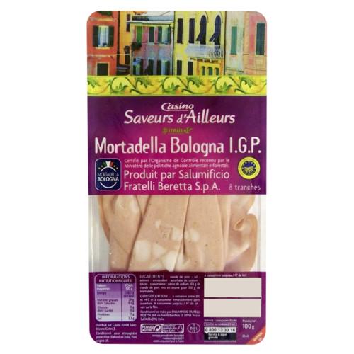 Mortadella Bologna IGP. Ingrédients : Viande de porc - sel - arômes - antioxydant : ascorbate de sodium - épices - conservateur : nitrite de...