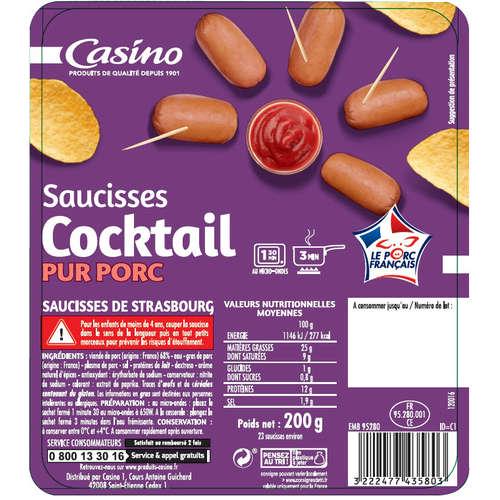 saucisses cockail. Quantité : 200 g Marque : Casino