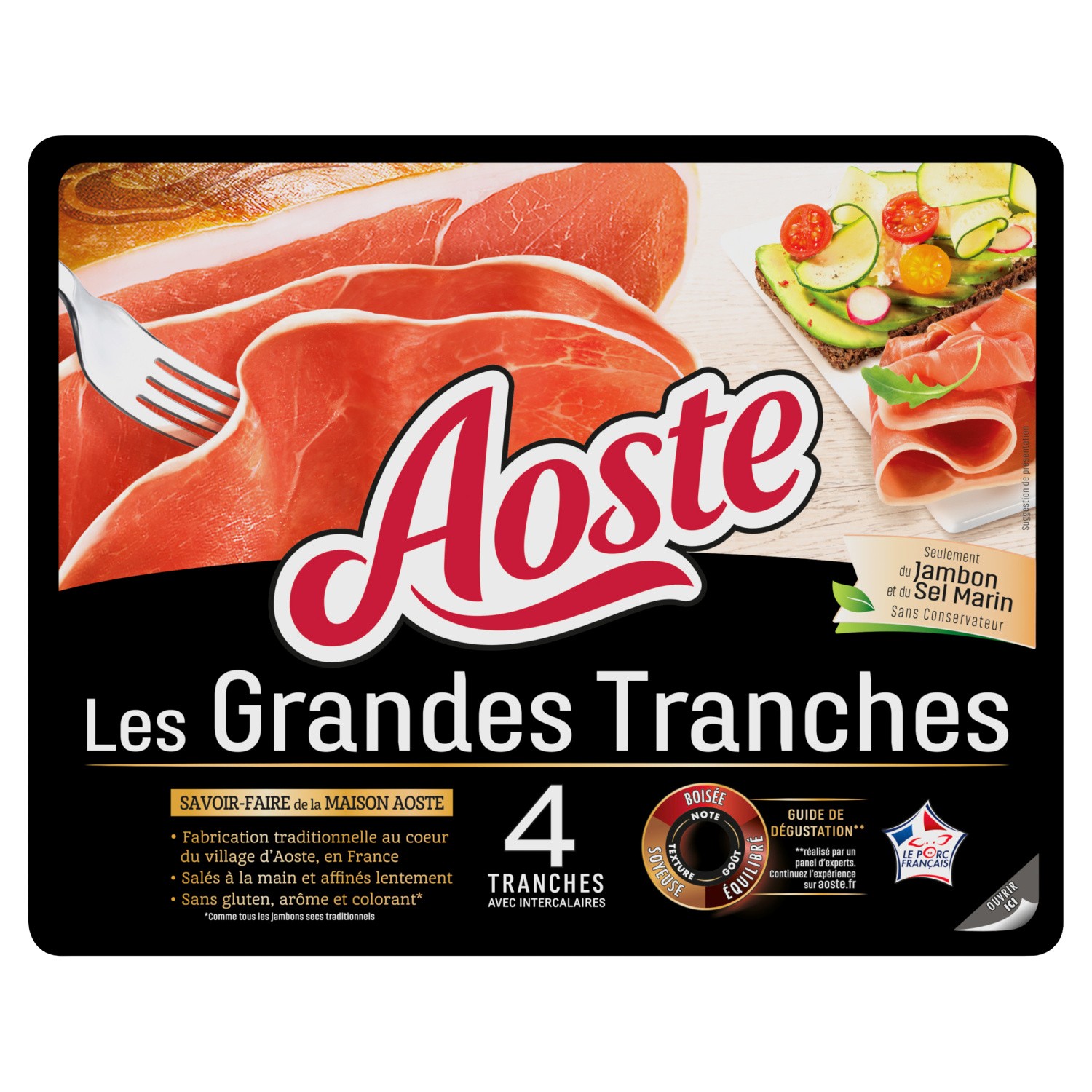 Jambon cru. Ingrédients : Jambon de porc origine France, sel. Sans conservateur. Présence possible de fruits à coque et de lait. Quantité : 4 tranches...
