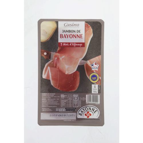 Jambon de Bayonne 9 mois d'affinage. Ingrédients : Jambon de porc (origine : France) - sel - conservateur : nitrate de potassium. Quantité : 6...