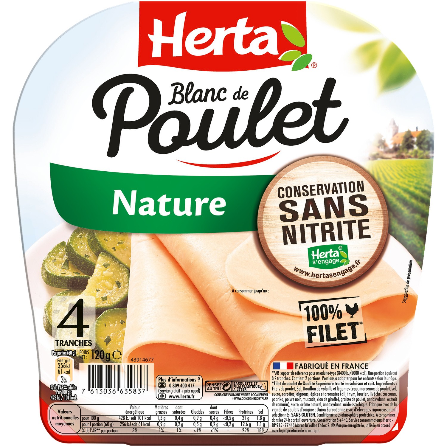 Blanc de Poulet Nature 4 tranches Sans Nitrite