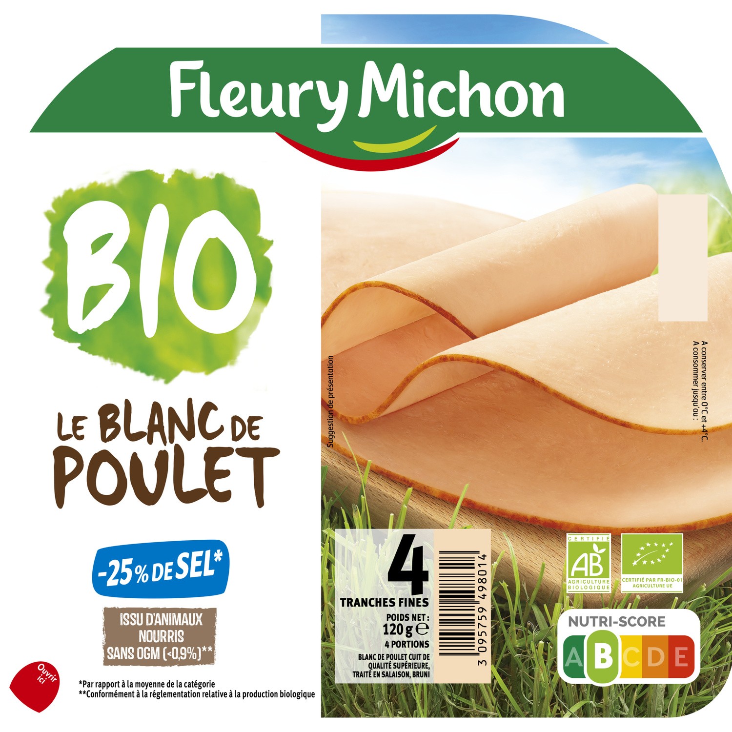 Blanc de poulet BIO, -25% sel* - 4 tranches