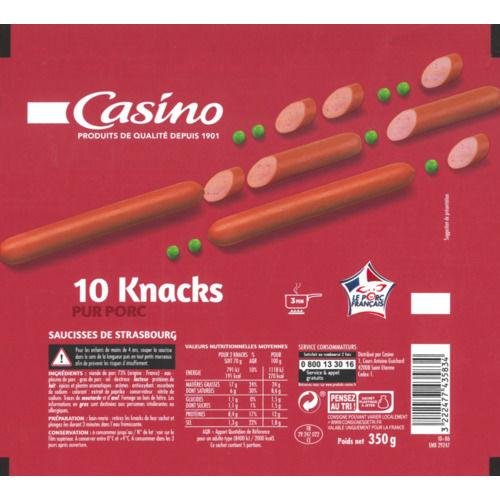 10 Knacks pur Porc. Marque : Casino