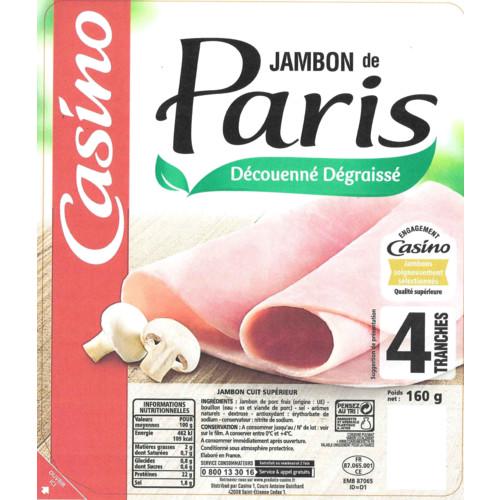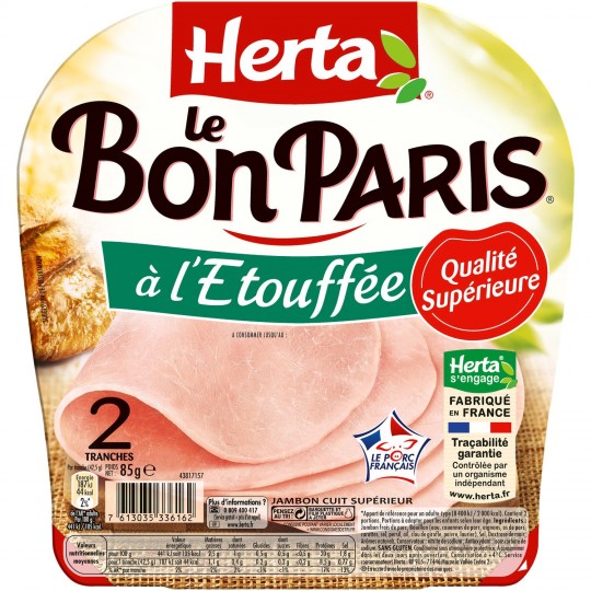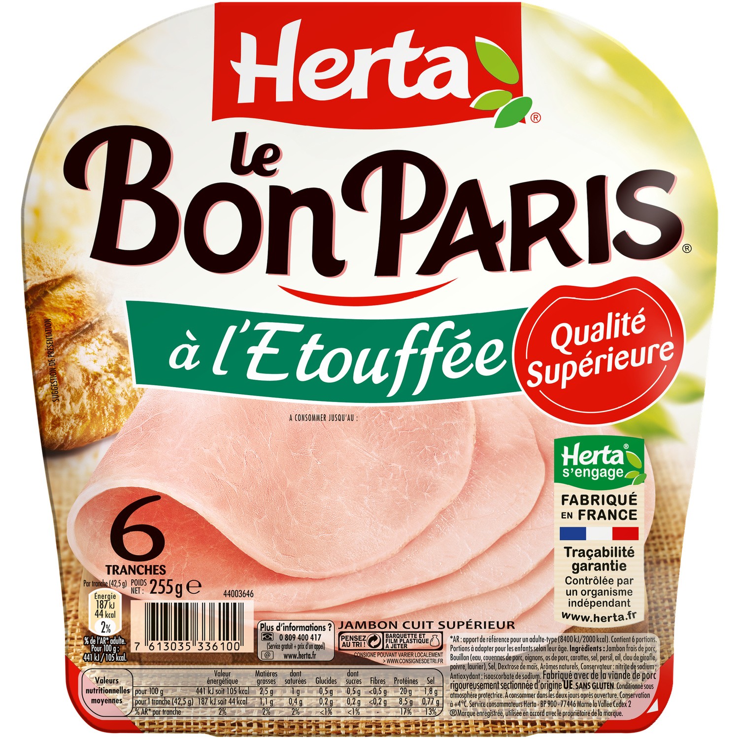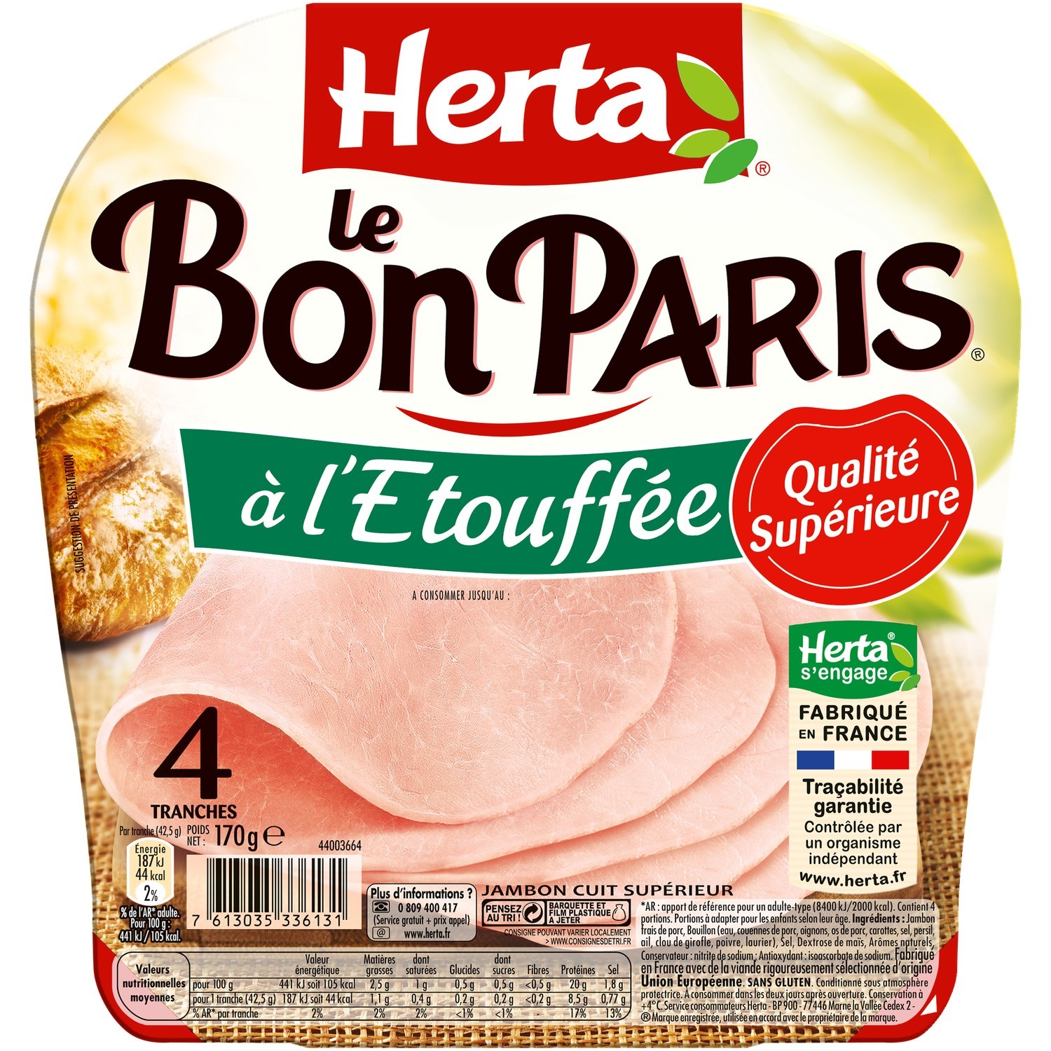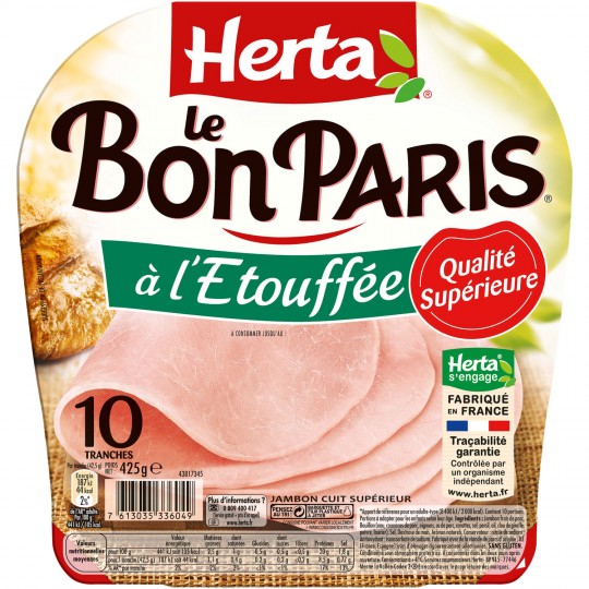 le Bon Paris. Ingrédients : Jambon frais de porc, Bouillon (eau, gras et couennes de porc, os de porc, concentré d'oignons et de carottes, sel,...