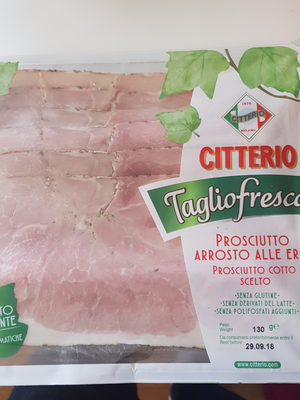 Arrosto di prosciutto alle erbe, jambon rôti aux herbes. Ingrédients : cuisse de porc, sel nitrité ( sel de cuisine, conservateur E250), herbes aromatiques, dextrose,...
