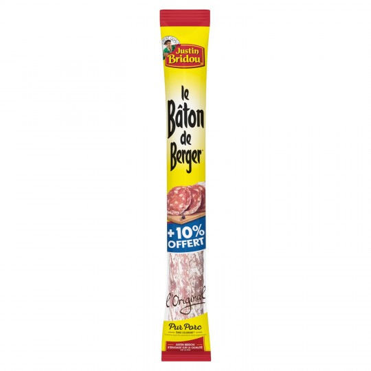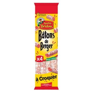 Le bâton de berger l'original. Ingrédients : Viande de porc (Origine U.E.), sel, lactose, dextrose, épices et plantes aromatiques, sucre, conservateurs : nitrite de sodium,...