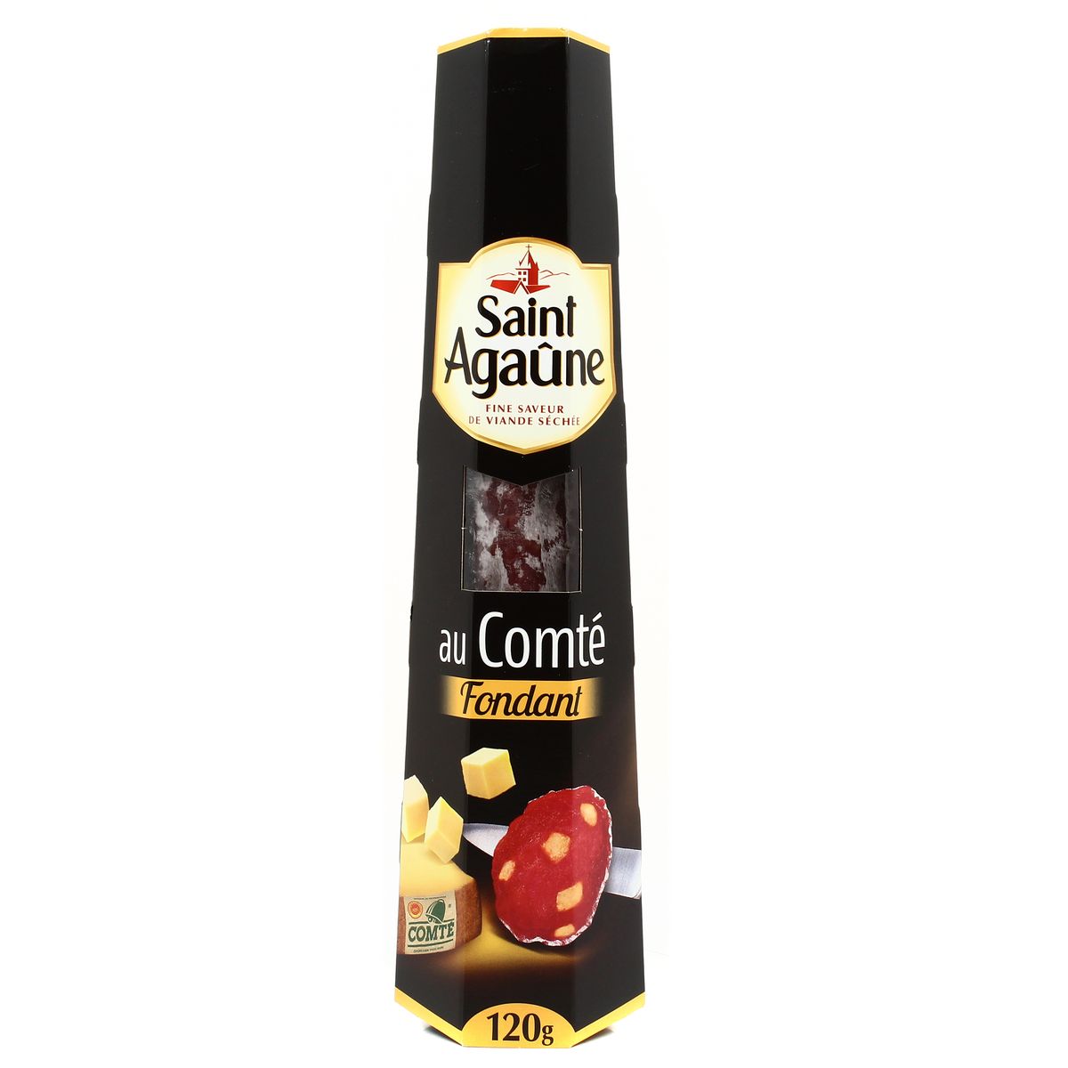 Saint agaûne au comté. Ingrédients : Viande de porc* ; comté (3,6 %) ; sel ; lactos dextrose ; sucre ; poudre de lait ;...