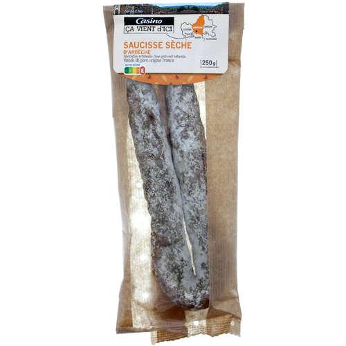 Saucisson de l'Ardèche IGP / Saucisse sèche pur porc de qualité supérieure à l'ancienne. Ingrédients : Viande de porc (origine : France) - sel -...