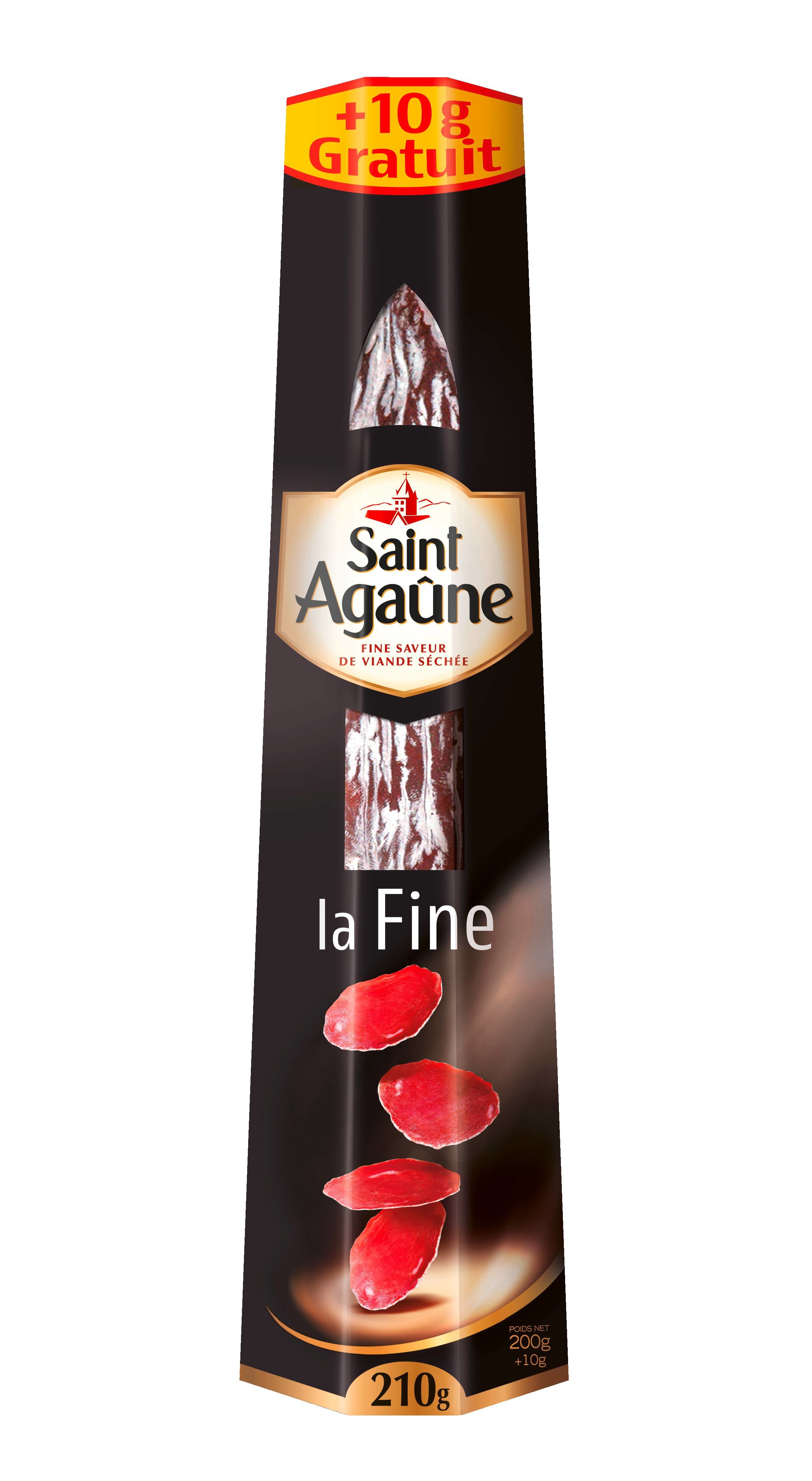 Spécialité de saucisse sèche la Fine Saint Agaûne. Marque : Saint Agaune