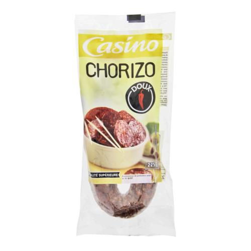 Chorizo pur porc doux supérieur. Ingrédients : Viande de porc - gras de porc - sel - _lactose_ - piment d'Espagne 2% - dextrose -...
