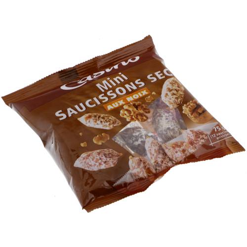 Saucisson sec supérieur aux noisettes. Ingrédients : Viande de porc, _noisettes_ entières (8,7 %), sel, lactose, dextrose, épices et plantes aromatiques, arômes naturels, sucre, conservateurs...