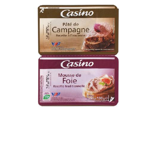 Mousse de foie - qualité supérieure / Pâté de campagne - qualité supérieure. Ingrédients : _mousse de foie :_ foie de porc 29% - gras...
