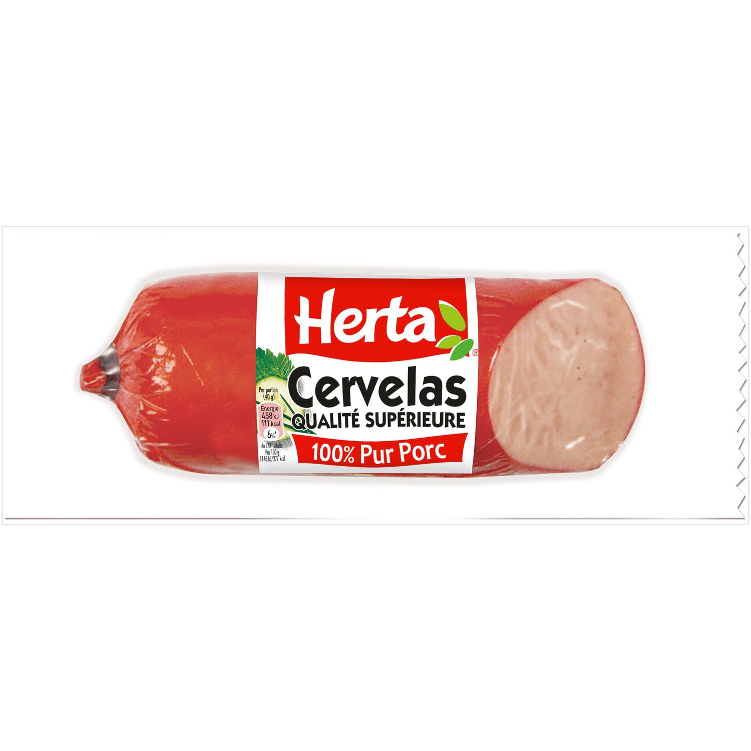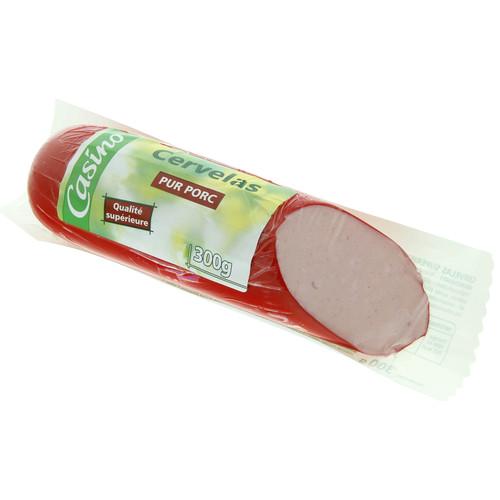 Cervelas supérieur. Ingrédients : Viande de porc 80% (origine : ue) - eau - protéines de sang - sel - gras de porc - stabilisant...