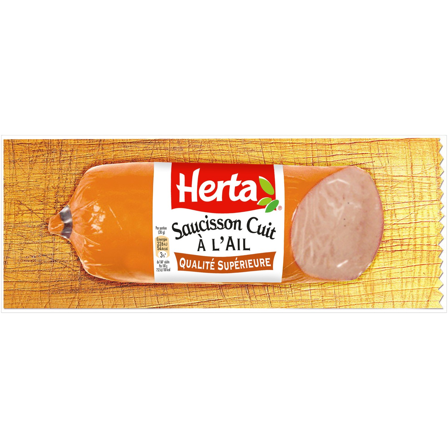 Saucisson cuit à l'ail supérieur. Ingrédients : Viande de porc 96% (origine : UE) - sel - dextrose - ail 0,2% - antioxydant : érythorbate...