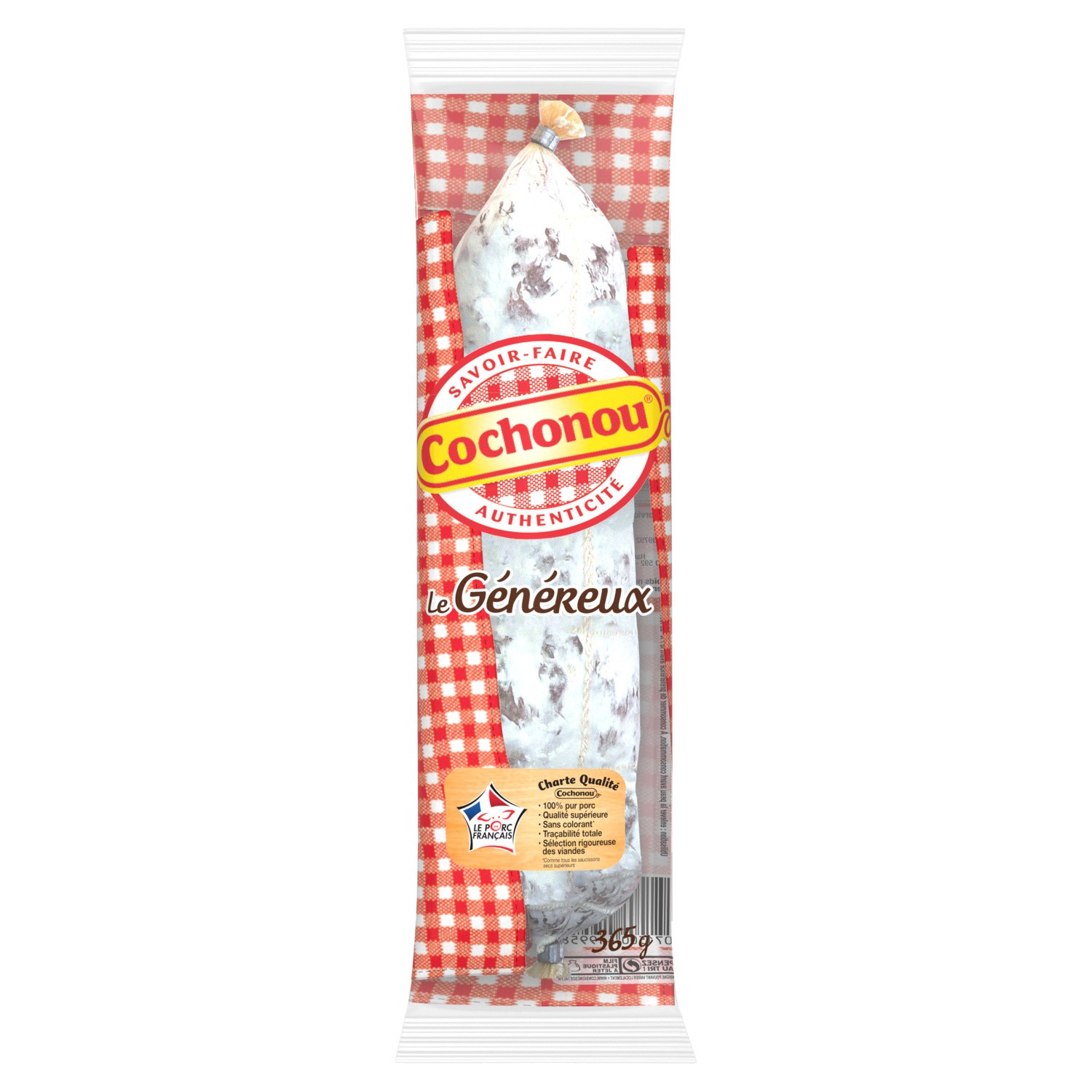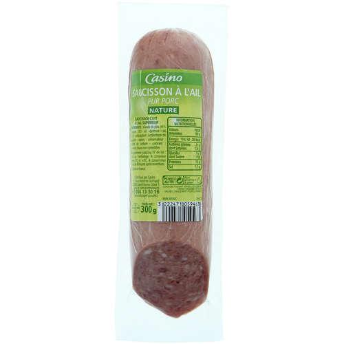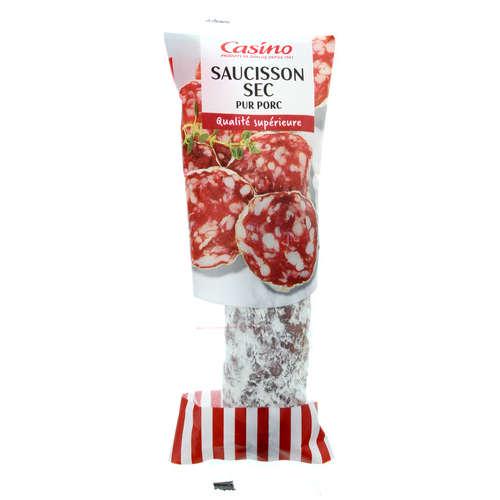 saucisson sec pur porc. Ingrédients : Viande de porc, sel, lactose, sucre, épices, ail, conservateurs : nitrate de potassium et nitrite de sodium, ferments. Quantité...