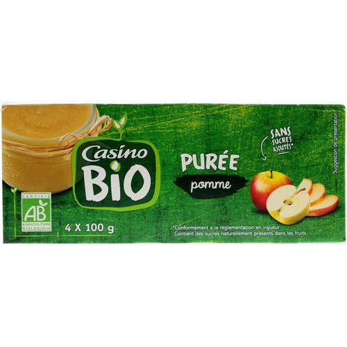 Purée de pommes sans sucres ajoutés* issue de l'agriculture biologique. Ingrédients : Purée de pommes** 99.97% - antioxydant : acide ascorbique. **Ingrédients issus de l'agriculture...