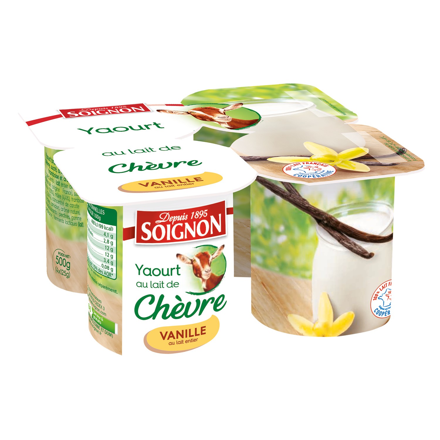 Yaourt sucré au lait entier de chèvre aromatisé à la vanille. Ingrédients : Lait entier de chèvre pasteurisé, sucre (5,5%), arôme naturel de vanille, ferments...