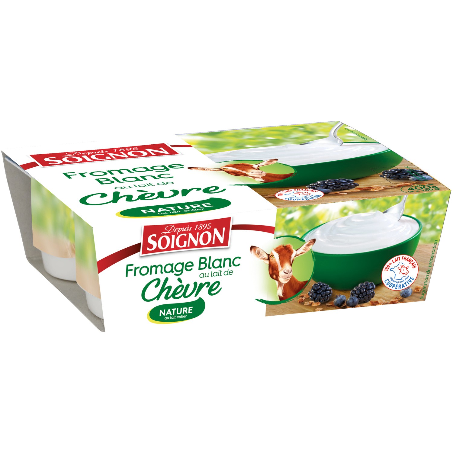 Fromage blanc au lait de chèvre. Ingrédients : _Lait_ entier de chèvre pasteurisé (origine France), ferments lactiques (_lait_), présure. Quantité : 400 g (4 *...