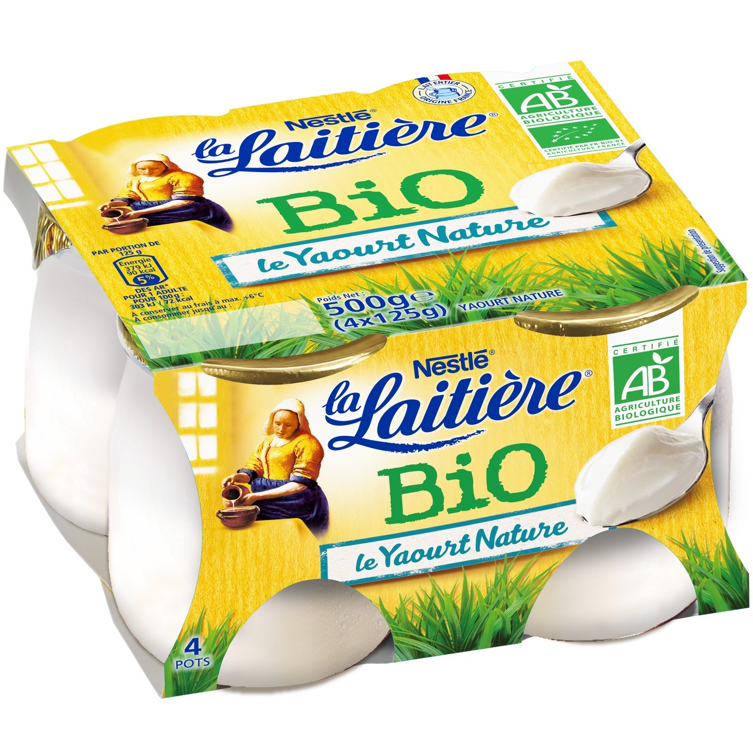 La laitiere BIO yaourt nature. Quantité : 4 x 125 g Marque : Nestlé